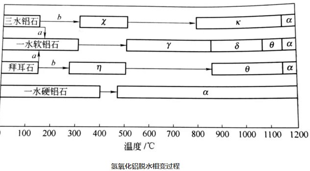 氢氧化铝在脱水过程中伴随着晶型转变,一般到1200℃全部转变成α—Al2O3。