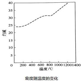 在煅烧过程中,密度随温度的变化如图,随着温度的升到1250℃,密度逐渐上涨,从2.5g/cm3升到4 g/cm3左右。同样是由于脱水的过程的结束,γ—Al2O3变得致密,比表面积下降,导致密度上升。